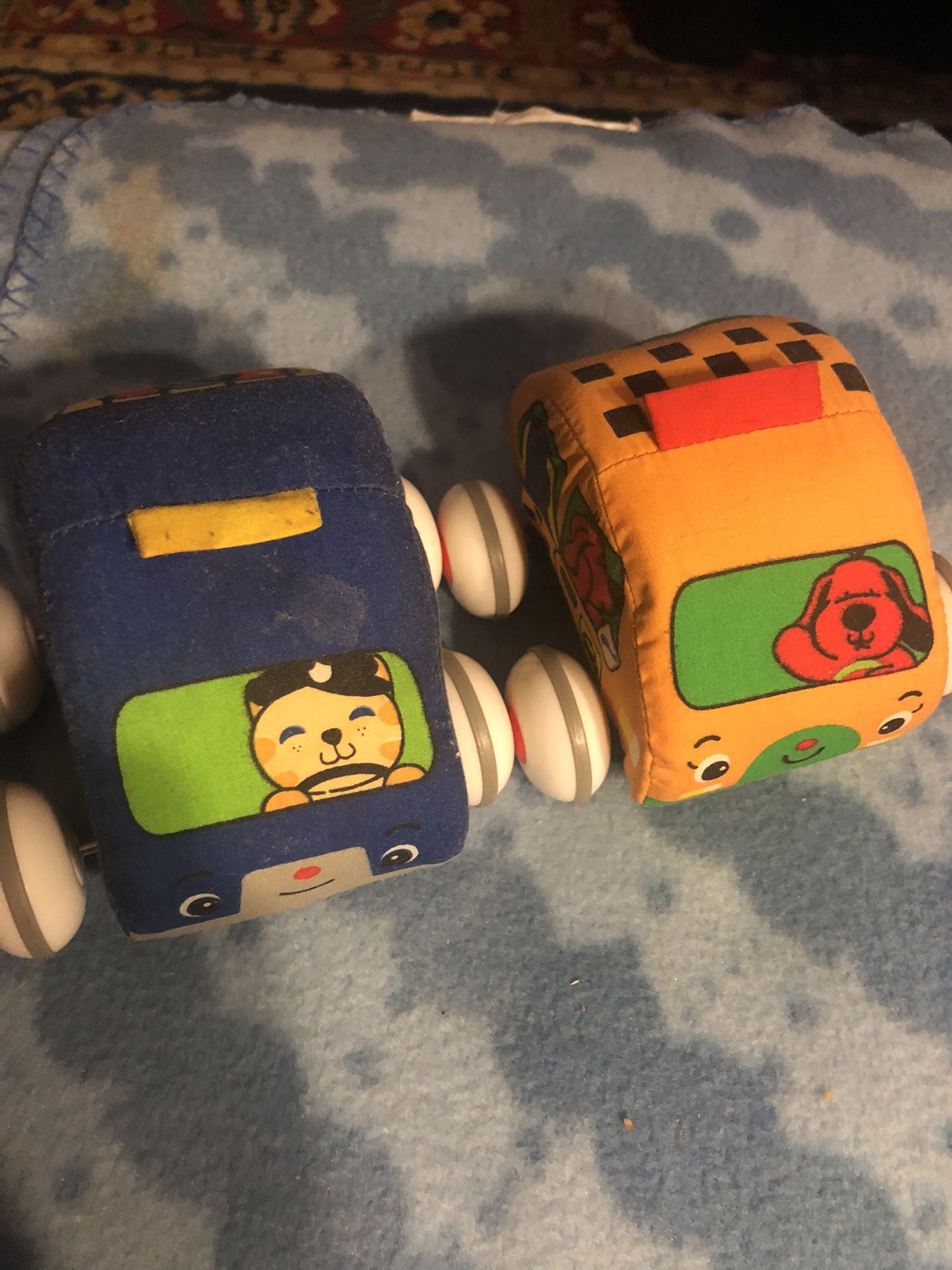 Cloth body cars 1 taxi and 1 police car can be removed from wheel axis and washed on low and reattached. Great toys for Christmas. Buy today! Price Reduced!