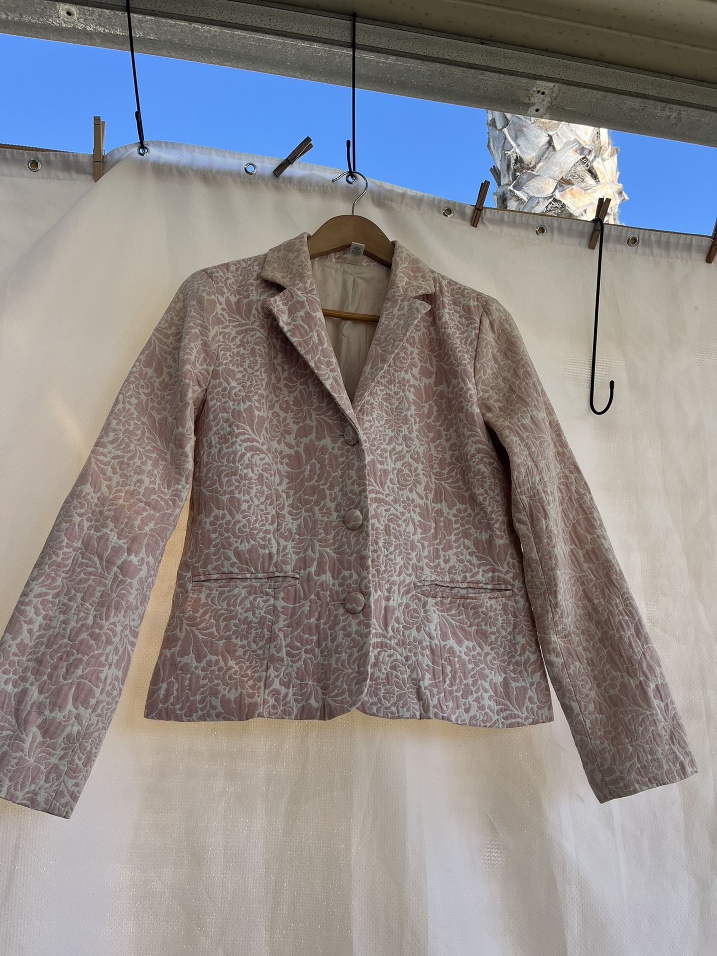 Y2K Fall 2005 Old Navy Women’s Suit Set Floral Ivory/Pink Jacket Size Large Skirt Size 10