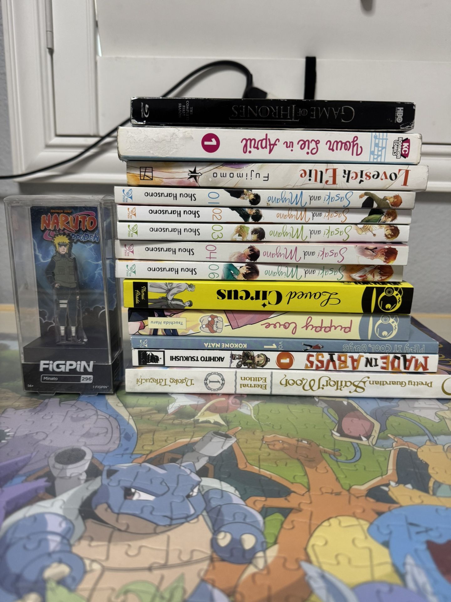 • Sasaki and Miyano Vol. 1,2,3,4,6 – great condition, well cared for • Loved Circus – great condition • Puppy Love – great condition • Made in Abyss – great condition • Play It Cool, Guys – great condition • Sailor Moon – readable but has some stains (priced accordingly) • Game of Thrones – Season 1 (DVD/Blu-ray) – only played once Your love in April: poor Lovesick Ellie: poor • Minato Pin – brand new, never Sold as a set. Pickup only Thanks for looking