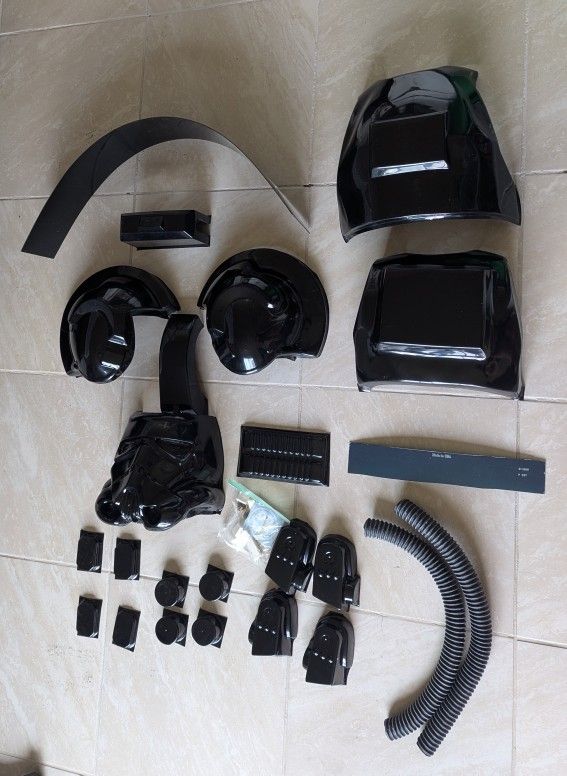 Full unassembled small Tie Fighter armor kit From Walt's Trooper Factory, a very well-regarded armor crafter in the Star Wars scene. If you're looking to join the 501st, Walt's armor is definitely approvable. Small size, so it'll fit an older child or a small woman (up to around 5'4).