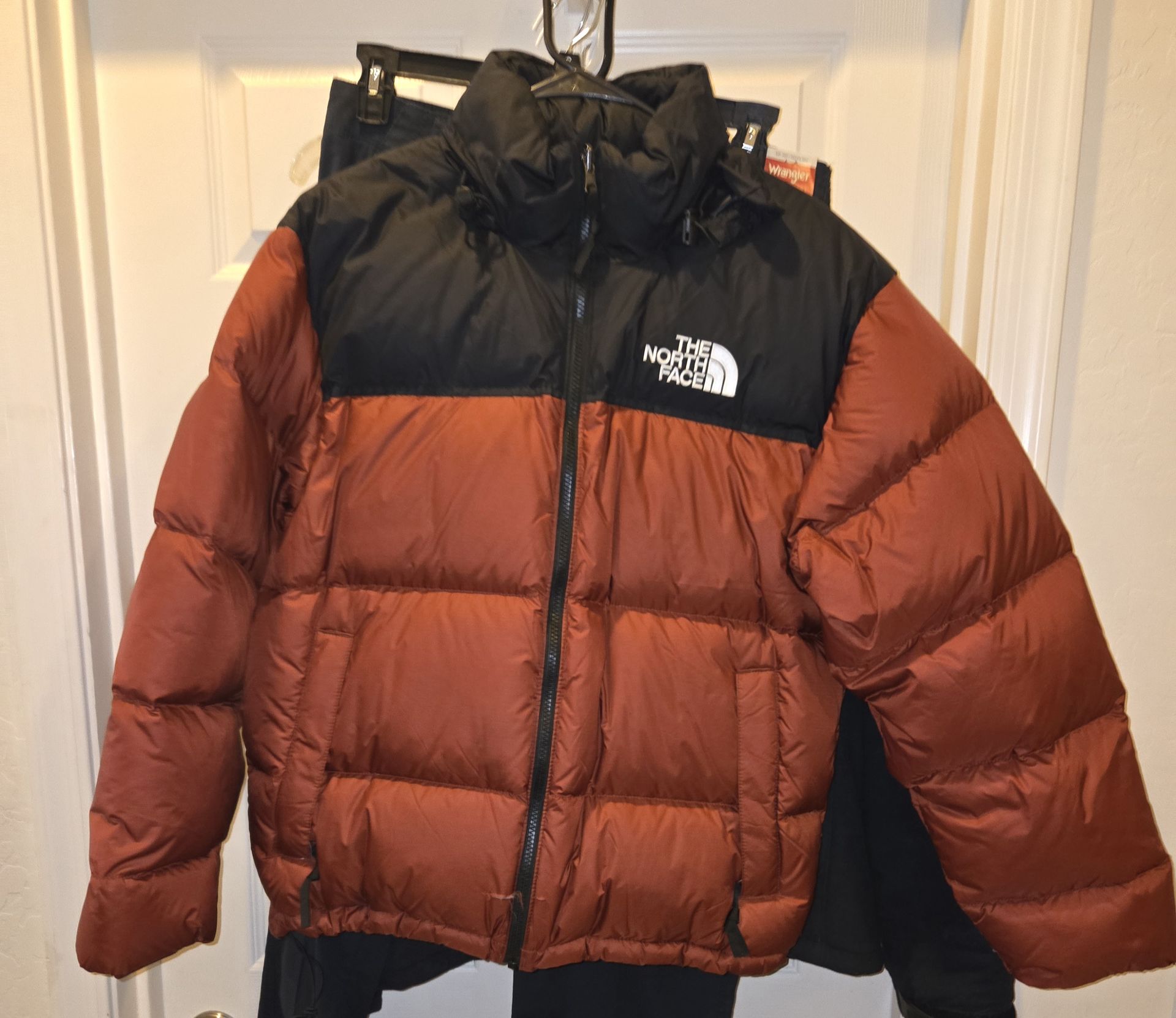 New The North Face Two Tone Puffer Jacket. Size Medium. Insulation Goose Down. Small tear at bottom, see photo.