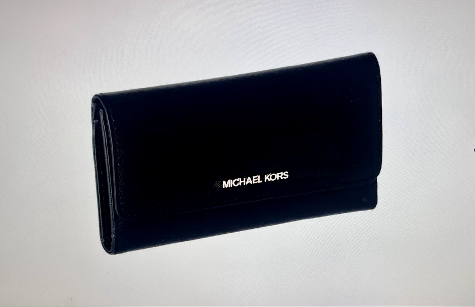 Michael, Michael Kors, large logo, black/silver soprano, leather trifold wallet