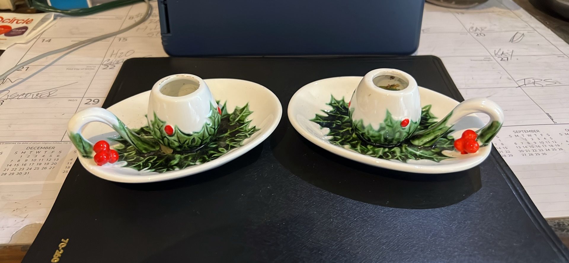 AUTHENTIC VTG LEFTON CERAMIC CHRISTMAS CANDLE HOLDERS