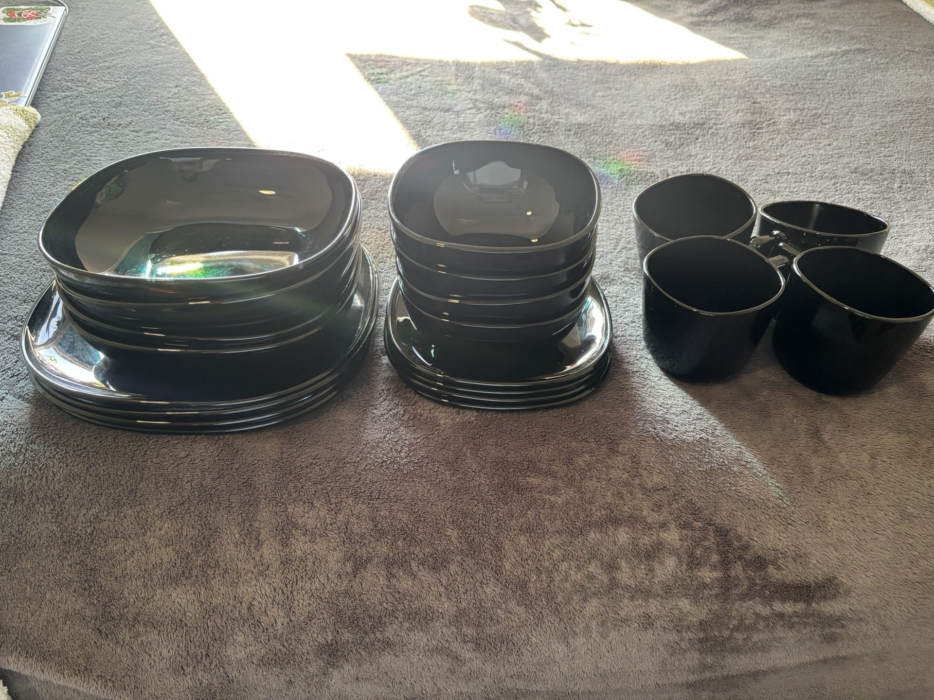 Four piece plate set of 4 with matching mugs. Need to sell asap!