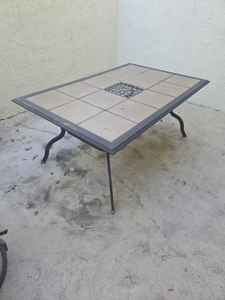 Patio Dining table, 5'6" x 3'6" Includes spare tile for tabletop Offers welcome!