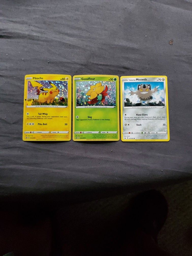 Holo Pikachu, holo Gossifleur, & Meowth Offer and trades accepted