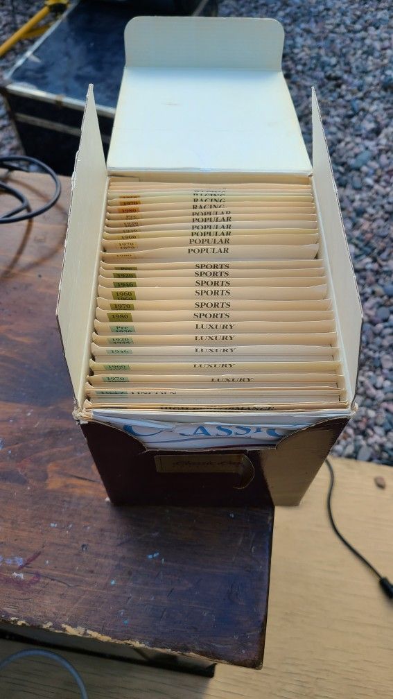If it's posted, it's still available, so don't ask.... There has to be at least 200 cards or more in this box. I collected these in the 1980s. Each card describes that particular car in detail, lots of fun, great condition. Great if you're a card collector. I live near 20th street and bell road area.