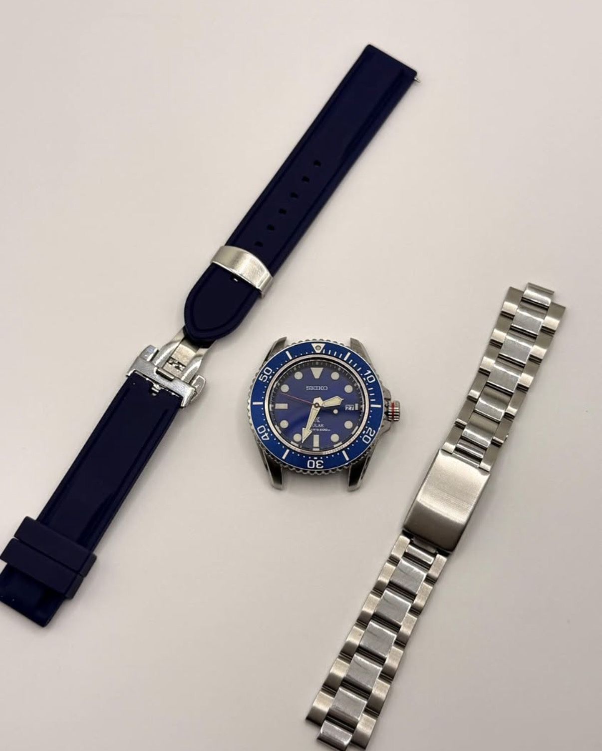 A solar powered model with a royal diver's design and comfort. The case design is stable and stable, not to mention the authentic specifications for use in diving. The convenience of a solar powered model that does not require regular battery replacement. The sapphire glass is suitable for tough outdoor use as well as daily use. The Details: Model: SNE593 Dial: Deep Sunray Blue with highly legible LumiBrite markers. Movement: Seiko V157 Solar Caliber (Powered by any light source; no battery changes needed) Power Reserve: 10 months on a full charge. Crystal: Scratch-resistant Sapphire Crystal. Bezel: Blue unidirectional rotating elapsed time bezel. Water Resistance: ISO 6425 Certified Diver’s 200m 2 Bracelets: Oyster style stainless steel bracelet and Silicone Divers butterfly strap and Original Seiko bracelet Case Diameter: 42.8mm Thickness: 10.7mm (Very slim and Fashionable) No Trades Msg me for any questions CHECK OUT MY OTHER LISTINGS!