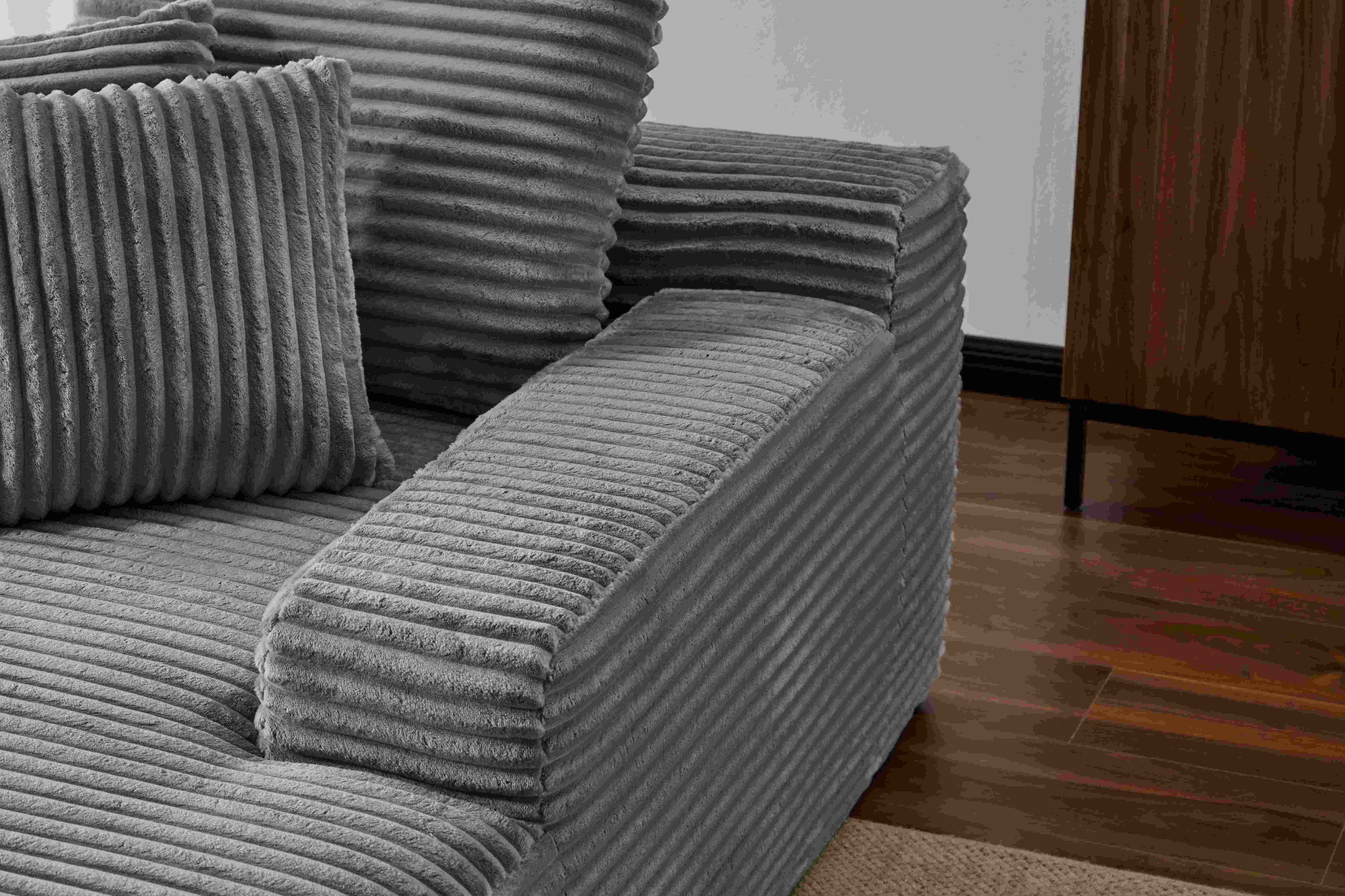 Oversized Chaise Lounge Chair Cozy Cloud Couch, Modern Plush Corduroy Upholstered Sleeper Sofa Daybed with 3 Throw Pillows and Wide Armrest for Living Room, No Assembly Required,Grey Length (in.): 52.36 Width (in.): 14.57 Height (in.): 14.57 Weight (lbs.): 88.66 【Modern Style】The chaise lounges comes in a neutral color palette for extra comfort.Its versatile design blends well with European, minimalist or modern décor and ensures comfort without sacrificing aesthetics, making it the perfect addition to any living space. 【Spacious and Soft Lounge Chair】The lounge sofa is wrapped in soft striped faux fur fabric, showing a charming striped texture and effectively reducing the day's fatigue. This chair is meant to offer a cozy and relaxing seating experience. You can sink into its plushness and relax after a long day. It's a perfect choice to enhance the comfort and aesthetic of your living area. 【Ergonomic Design】Crafted with ergonomic principles to offer a perfect balance of comfort and support, ensuring a relaxing lounging experience. 【Suitable for Many Occasions】Whether it's a family gathering, a nap or a happy time with friends and family, this corduroy sofa will be a highlight in your home. At the same time. No matter be collocation Europe type, contracted or modern style household, can perfect fusion with it. 【No Assembly Required for Immediate Enjoyment】Skip the hassle of assembly. Simply unbox and wait for about 72 hours to decompress to start enjoying your new sectional sofa right away for a seamless addition to your home. W3723P345160 CA4