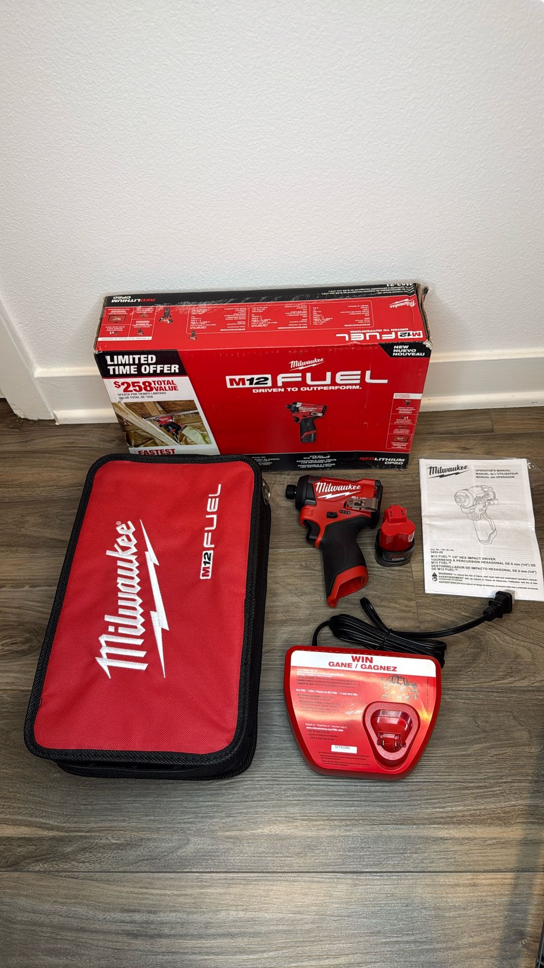 Milwaukee M12 FUEL 12-Volt Lithium-Ion Brushless Cordless 1/4 in. Hex Impact Driver Compact Kit W 2.0Ah Battery and Bag