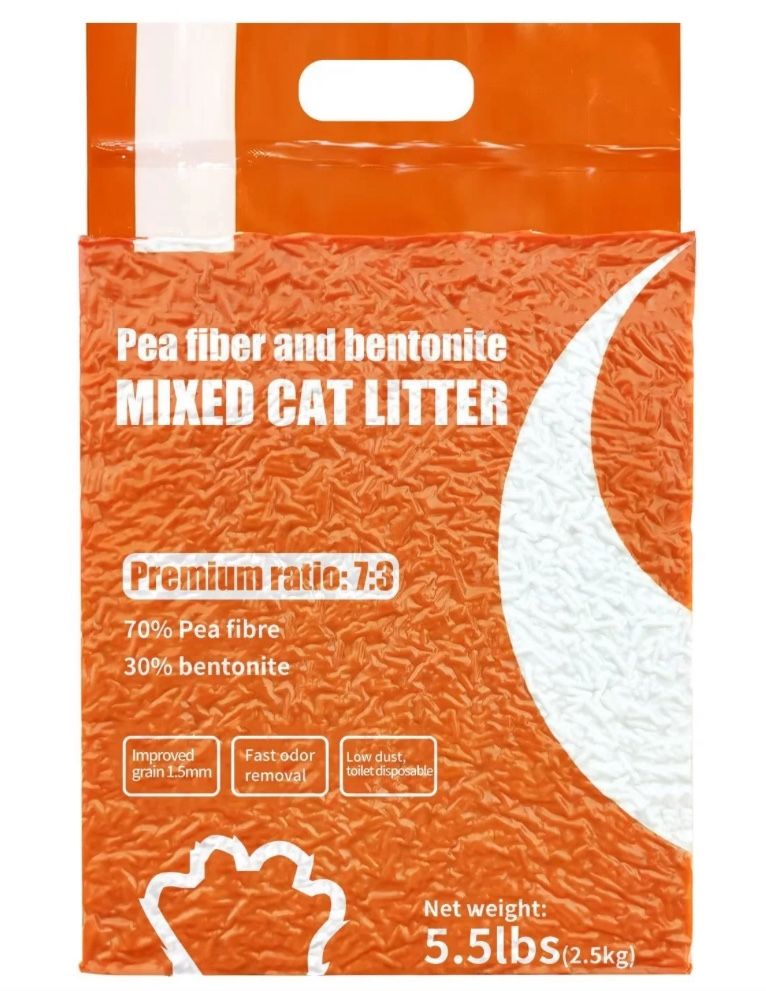 Pea Fiber and Bentonite Mixed Cat Litter 5.5lbs Flushable Kitten Litter Unscented Ultra Clumping Kitty Litter, No Dust Formula Low Tracking Biodegradable