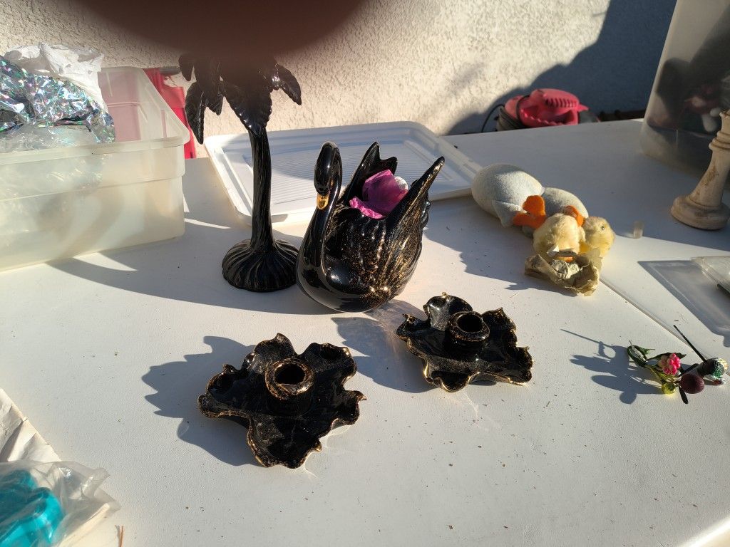 Black Swan Candle Holder Set