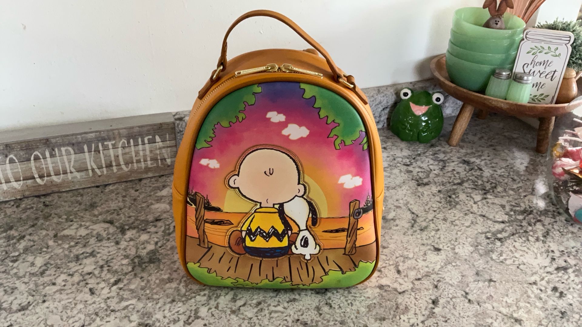 Loungefly Peanuts Snoopy & Charlie Brown Backpack Happiness Is A Warm Puppy local pick up near me public place. overall, good condition has some scuffs see pictures