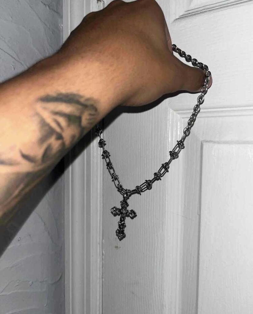 Cross Chain with barb wire typed chain #goth