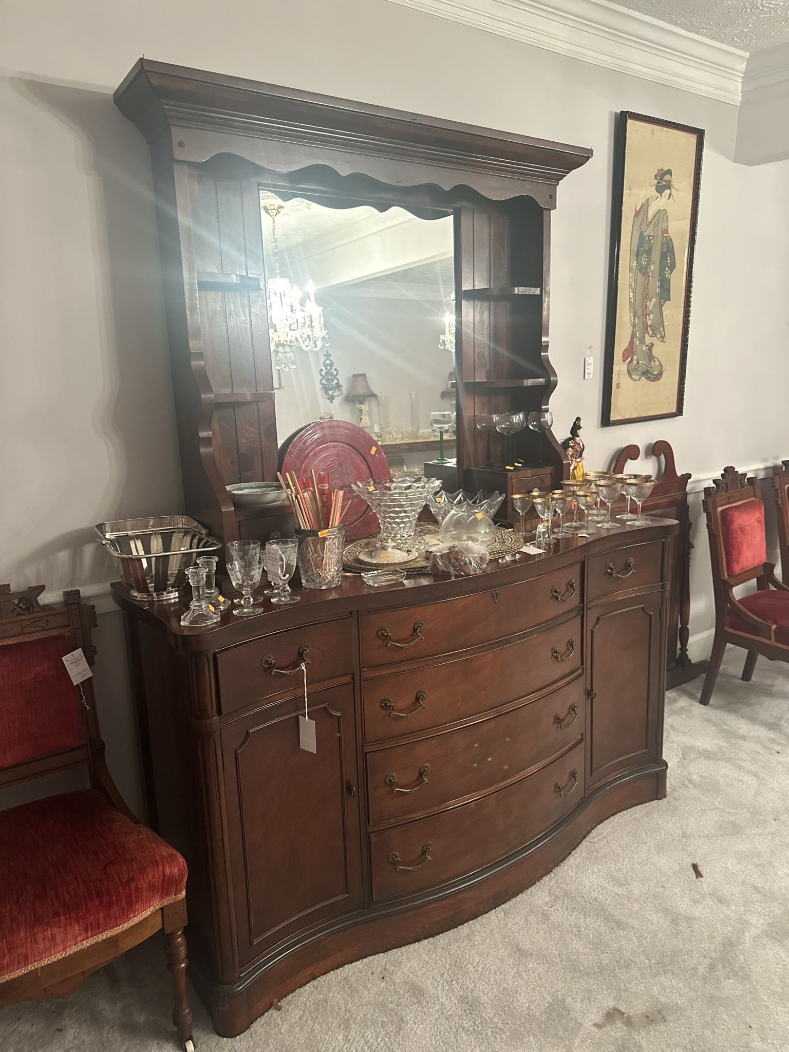 Wooden Dining Room Hutch (Drawers) + Mirror