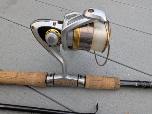 Okuma Avenger spinner ng reel on a 10 ft Shimano Clarus rod. Good condition. Used 4 times. Never been near saltwater.