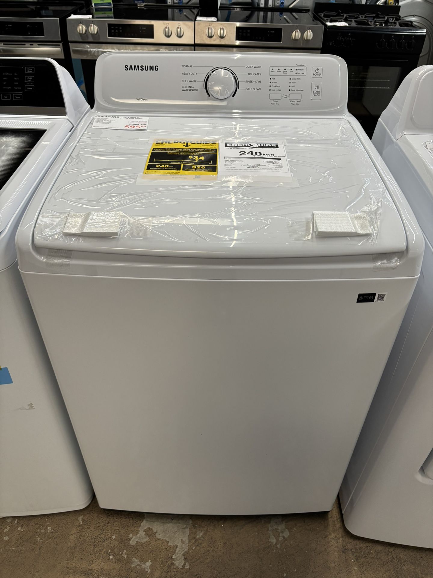 Delivery Available 1 Year Manufactures Warranty Scratch and Dent WA41A3000AW Samsung Top Load Washing Machine/ Washer 4.1 cu.ft. Capacity • Soft-Close Lid • 8 Washing Cycles • Vibration Reduction Technology+ • Extra High Water Level • Self Clean • Diamond Drum Interior • 3 Wash Options • 5 Temperature Levels