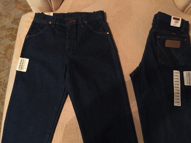 2 pairs of boys wrangler blue jeans waist 28 inseam 30 and 40 inches long