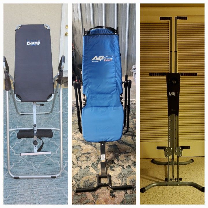 All three for $250. AB lounger Champ inversion table Maxiclimber