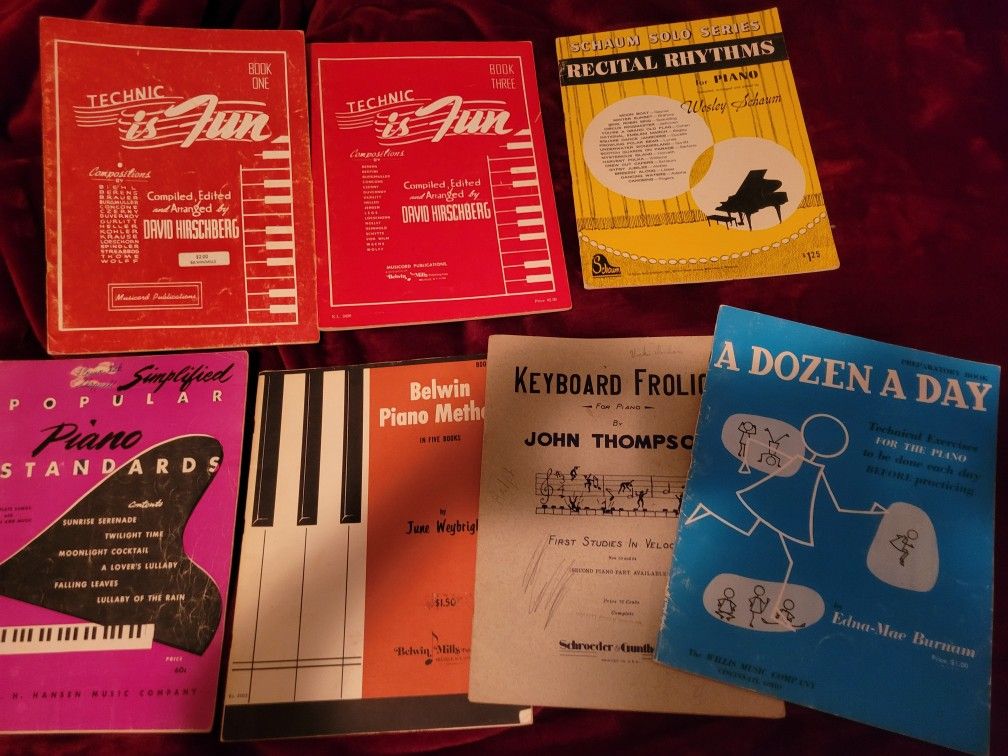 7 Books from Thompson, A Dozen a Day, Schaum, Bellwin, etc. Different levels from beginner to intermediate. Very good deal for the variety $10 Cash in person