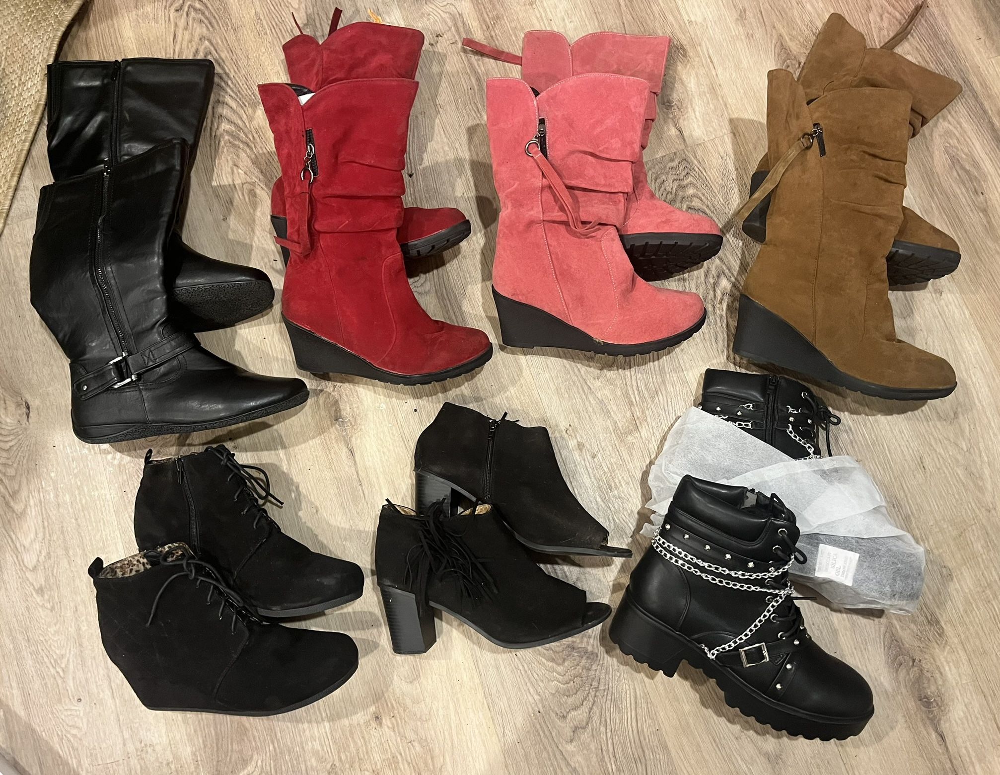 Size 10 Boots for Sale Keep warm this winter with some almost new or new boots. Ankle boots are $10 and Calf High Boots are $12. Must buy a minimum of 2 pairs. Pickup near downtown Dallas.