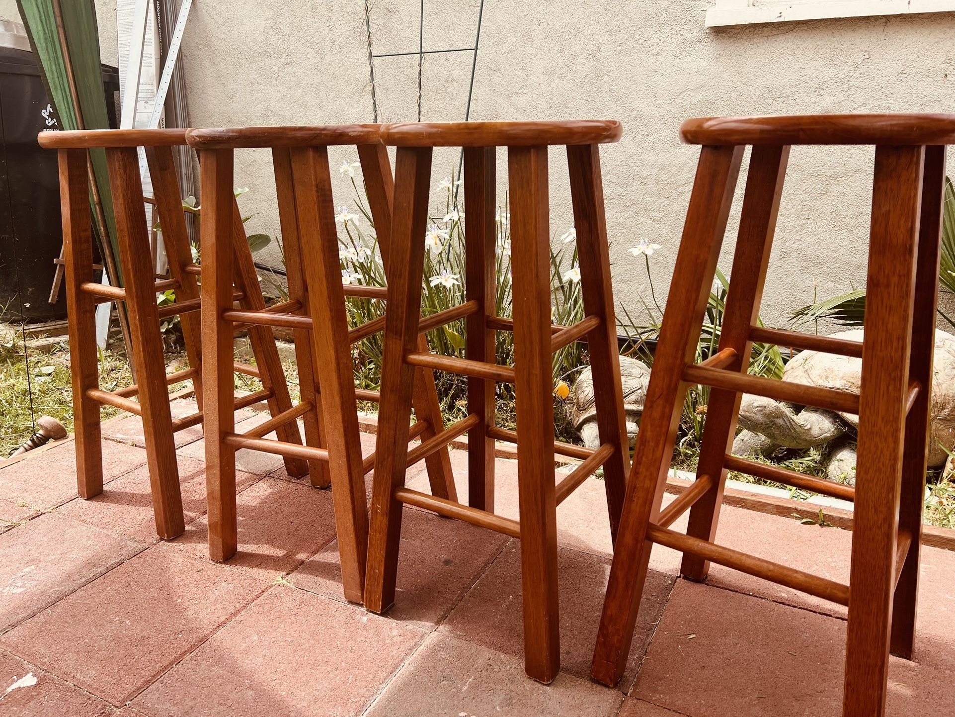 Bar Stools, Round Seat Tall Barstools Home Bar Chairs with Footrest Solid Wood Frame