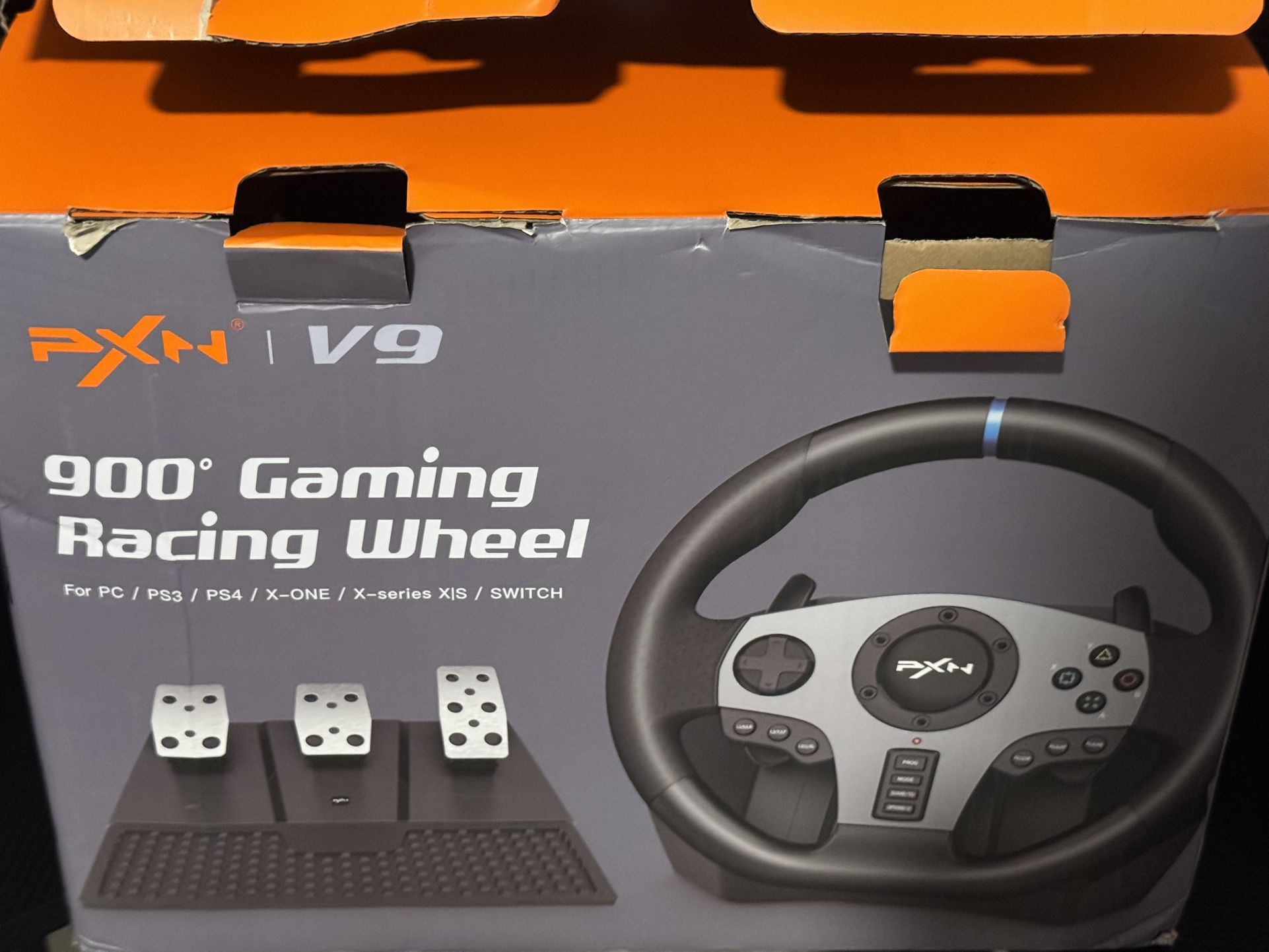 It comes with steering wheel, pedals and shifter.