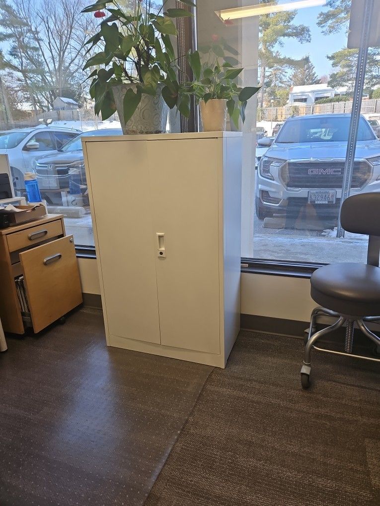 White Folding metal cabinet with lock and keys