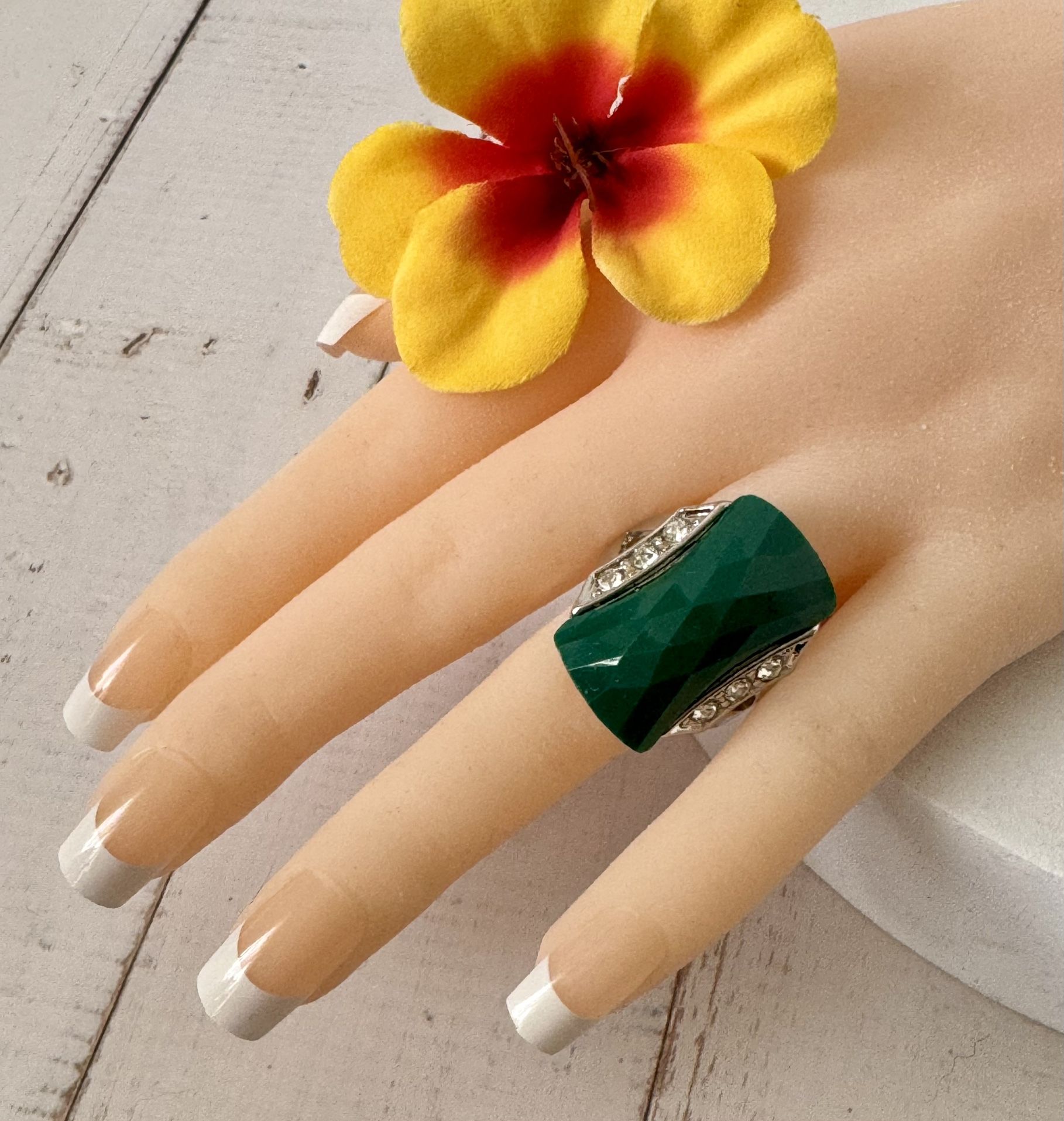 Women’s Green Gemstone Ring with Rhinestones. Size 9. NWT. #rings #jewelry #womensring #accessories #ring