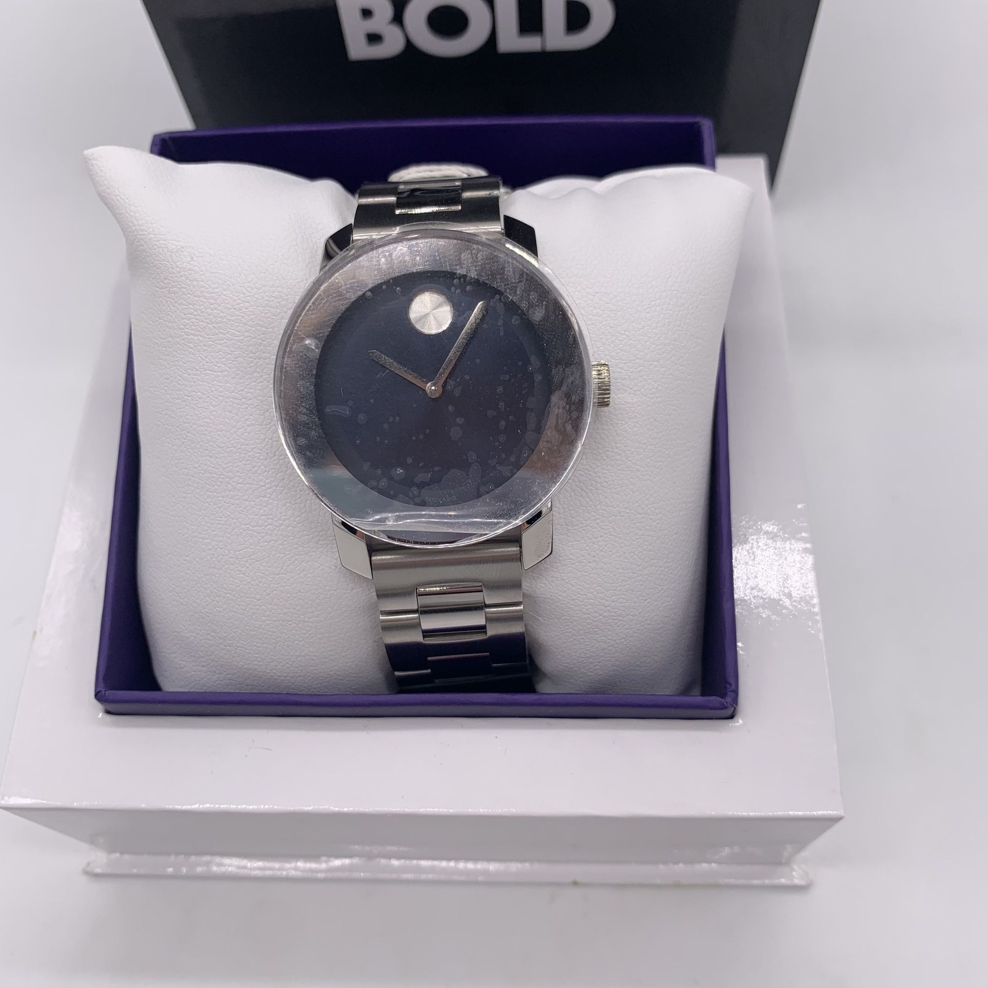 ❥ NWT Movado Bold 3600396 Blue Dial Stainless Steel Case Unisex Watch ❥ Still has the plastic film on watch dial to protect it from scratches ❥ Purchased from Nordstroms, forgot about it, and never used it (watch battery most likely dead and will need to be replaced) ❥ Swiss quartz movement ❥ Dial face color- blue ❥ Water Resistent up to 30 meters