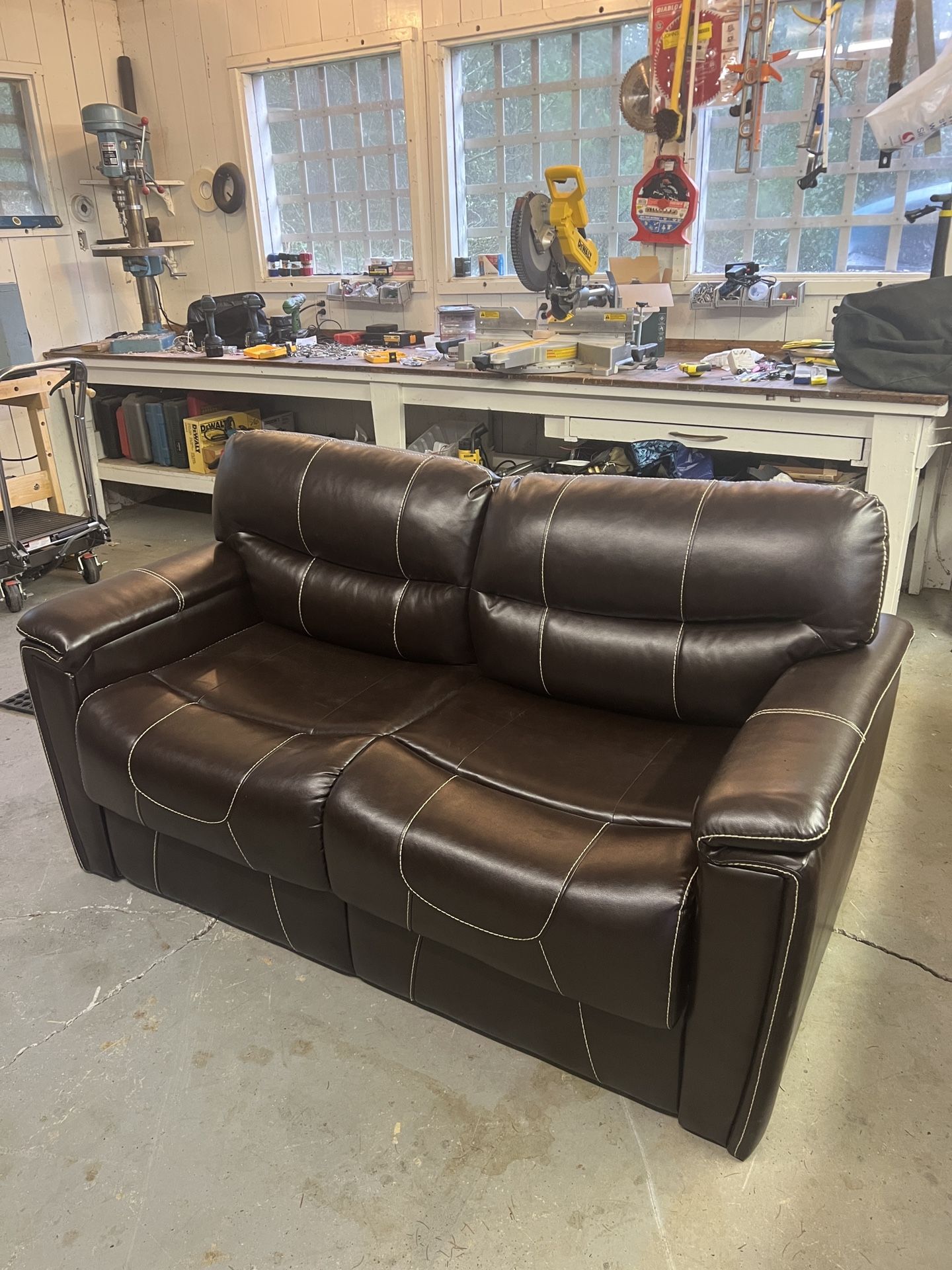 Selling a trifold loveseat sleeper sofa. Faux leather, in like-new condition. Non-smokers, no damage, stains or blemishes, no odors. Measures 64” wide, 34” deep and 36” high. Price is firm. Thanks for looking!