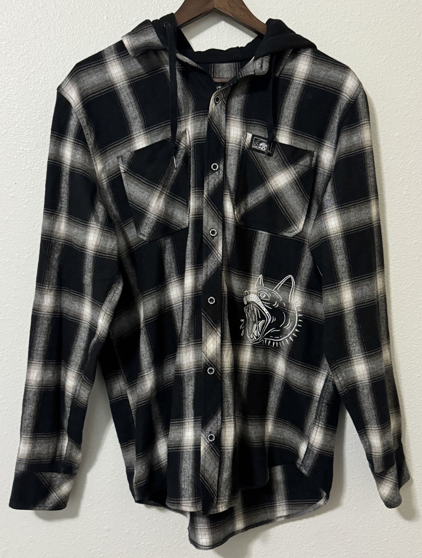 Lurking Class by Sketchy Tank K-9 Black & White Hooded Flannel Shirt Size M