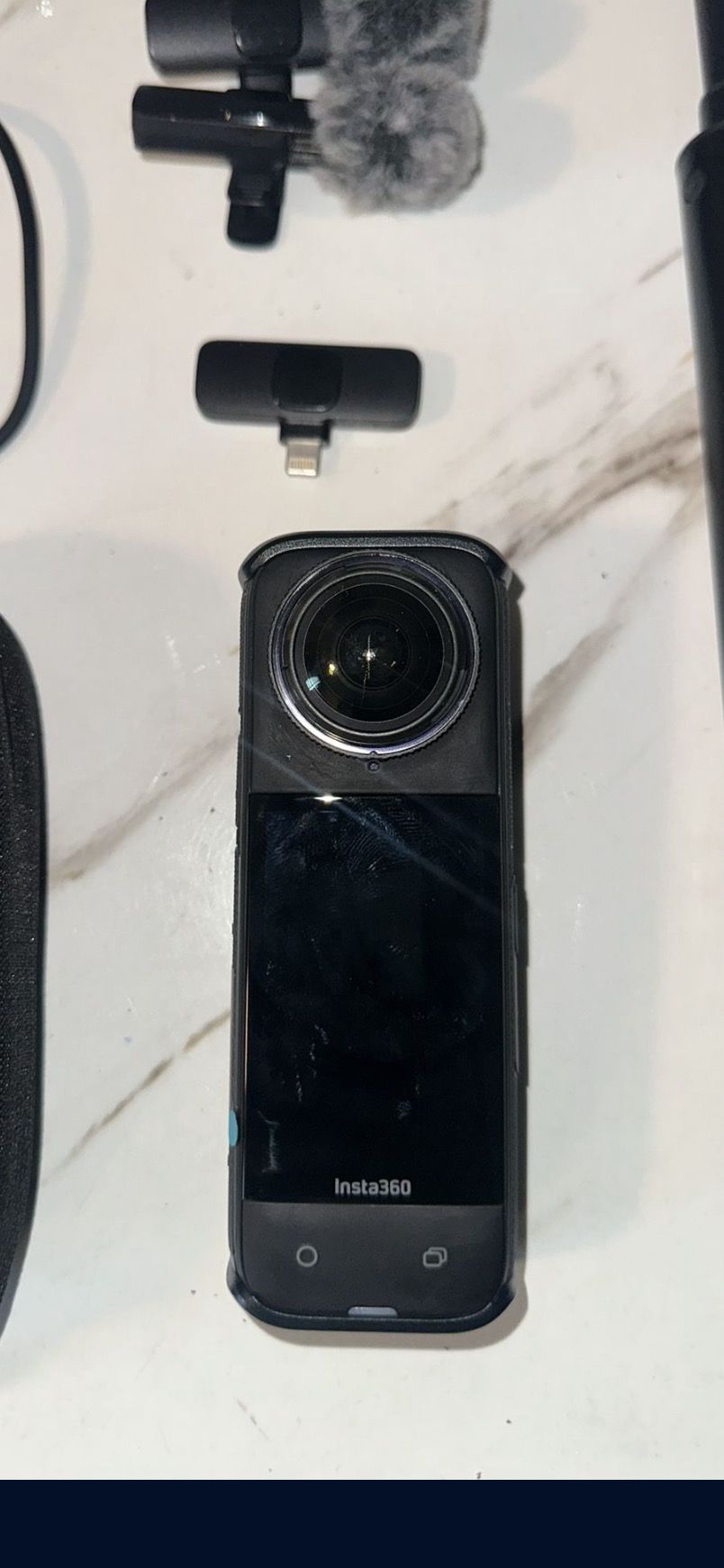 Insta360 X4 Camera (BRAND NEW) Comes with : Camera lens’s guard Charger Invisible stick Insta360 X4 tripod stand Insta360 travel pouch 256 GB No scratches No dents Retail price $500 + Brand New USED ONCE $450 obo Pick up and delivery “depending how many miles”