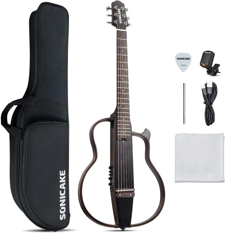 Travel Guitar, Portable Acoustic-Electric Guitar Kit, Solid Mahogany Body Easy Assemble Frames, Multi Body-Shape Sim Rechargeable Preamp, Gig Bag, All Accessories Brand new On Sale !! Very Good quality!! ***PRICE IS FIRM*** ***First Come First Serve*** *Check Size Details* Click on my profile listing to check more items. Our warehouse is located near Katy Legacy Stadium If you would like to come pick up DM me or call for address Advanced Digital Pre-amp:High quality digital front-end with multiple Body-Shape simulations, high-quality Reverb and Chorus effects, Resonance Enhancement effect, 2 band EQ adjustment, excellent tone shaping ability. Rechargeable Lithium Battery: Equipped with 2000mAh rechargeable lithium battery, long endurance of 10 hours, designed with energy-saving power to easily cope with various scenarios. Classic Acoustic Guitar Body Design: Traditional design restores the original guitar feel, bringing you excellent balance and warm playing experience. Ultra Lightweight Portable Body: Detachable wooden frame, total weight for assembled guitar is around 1.7kg, fully ensuring the portability. Travel-friendly companion, designed for the musician on the move. Solid Rosewood: Solid rosewood fingerboard and bridge, restoring the classic feel of acoustic guitar