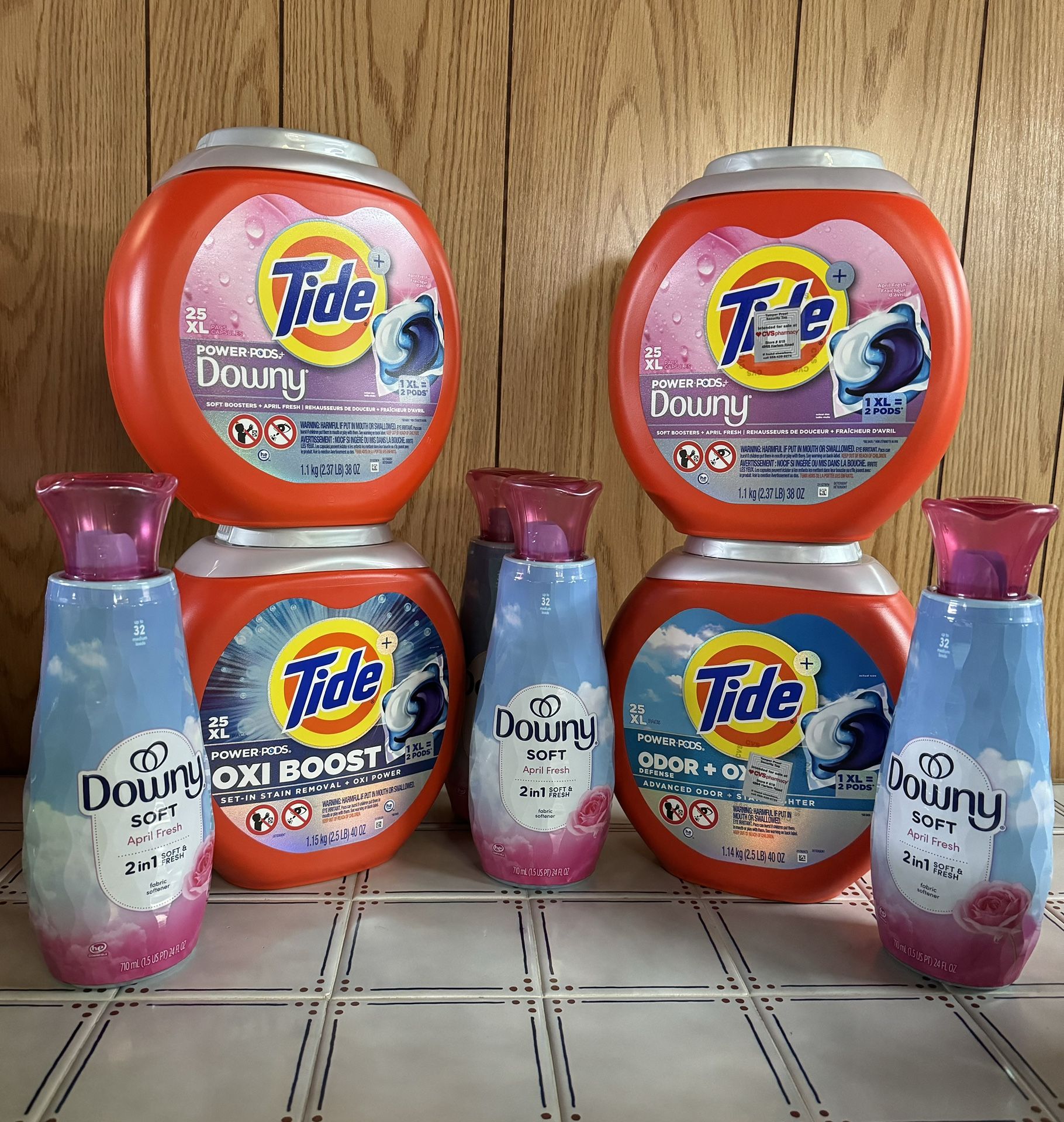 8 for $45 2- Tide XL pods , 25 count each 2- Tide XL oxy boost pods, 25 count each 4- Downy fabric softener, 24 ounce each No shipping Local pick up