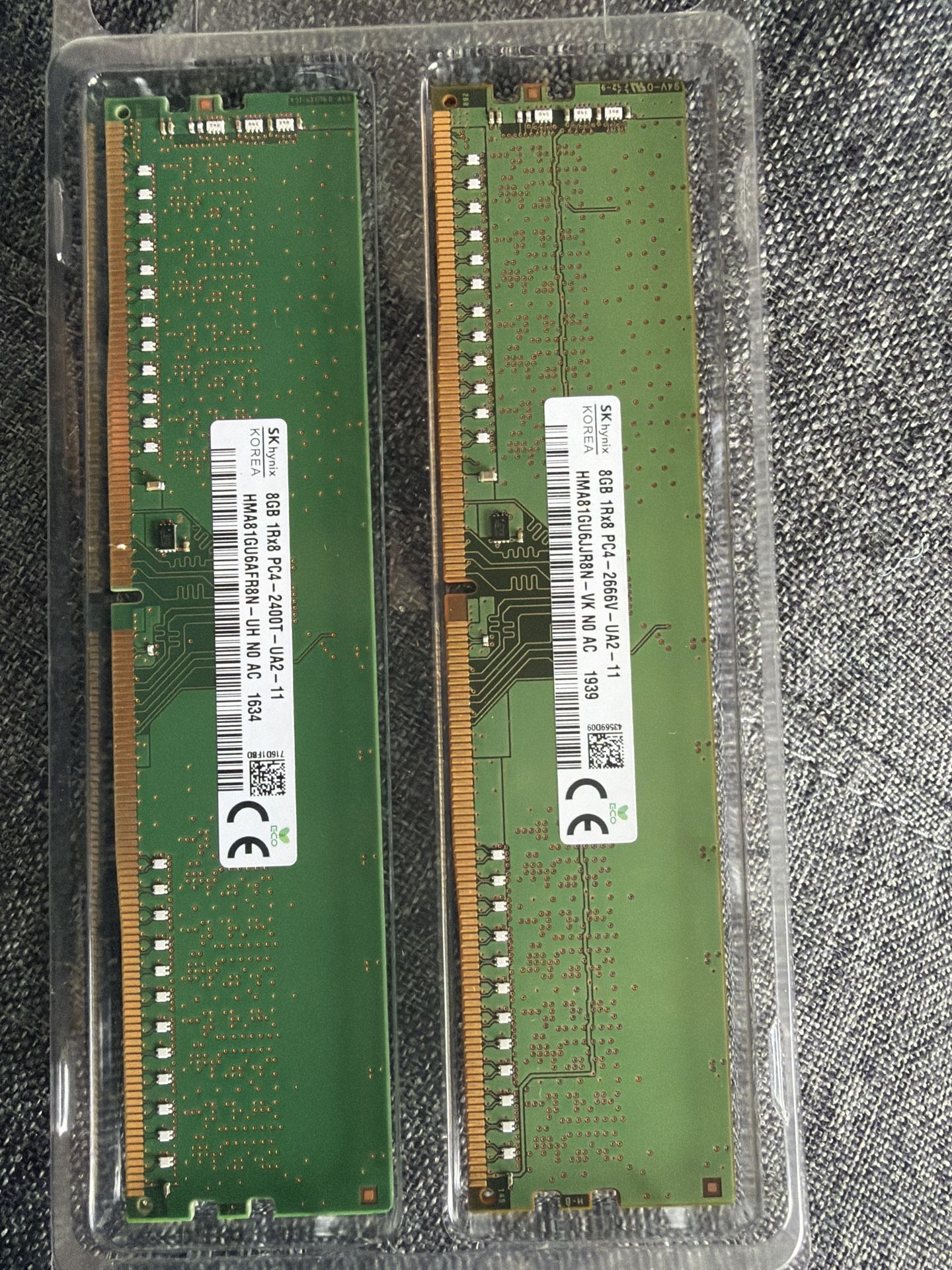 This listing includes two (2) SK hynix 8GB DDR4 desktop memory modules, for a total of 16GB RAM. Both modules were pulled from a fully working computer and are in good working condition. Price is firm. Non-negotiable. Please do not send offers or ask for discounts.