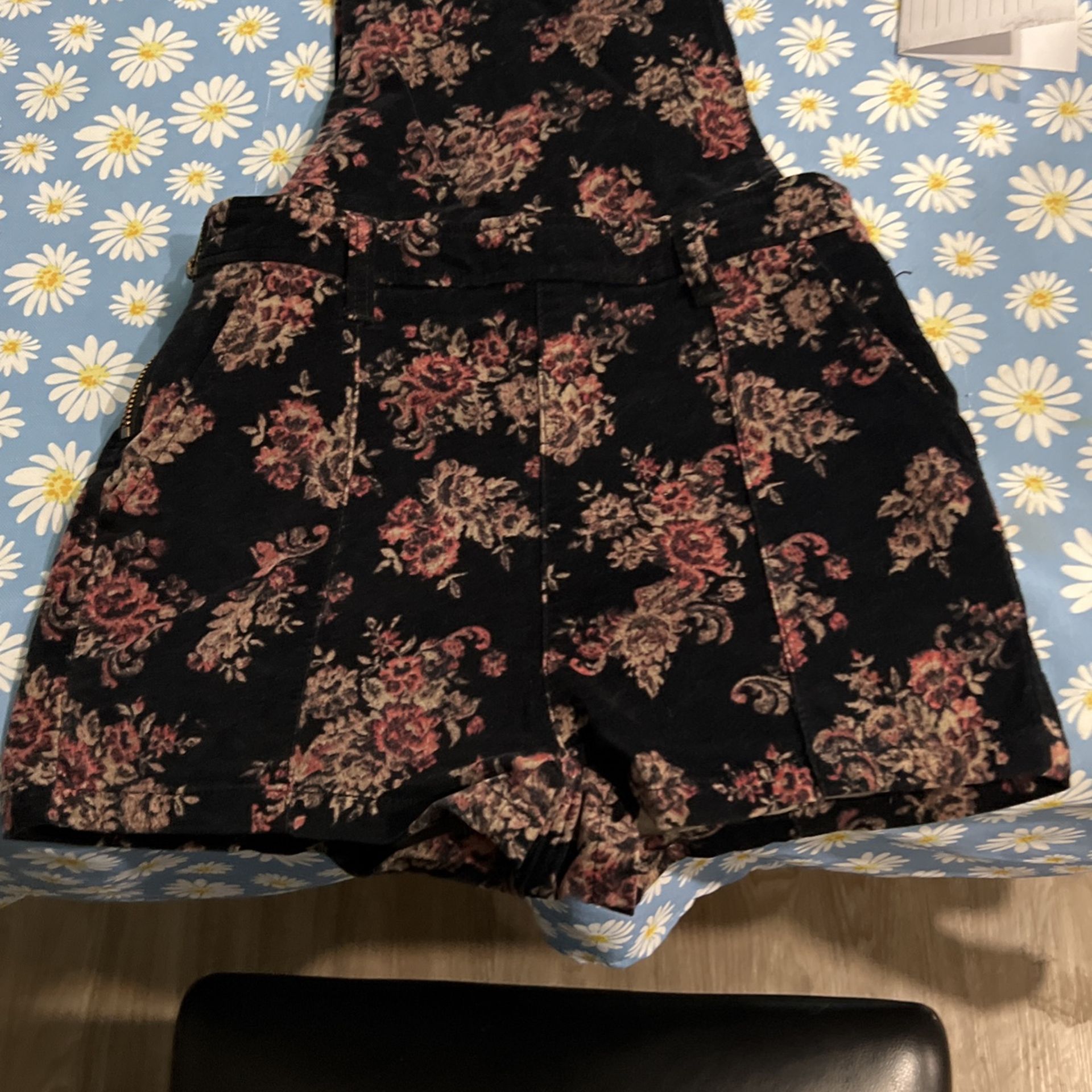 Coverall Shorts worn a couple times by granddaughter (you know kids thinking everything is disposable). Fabric is a heavy Velour/suede and is in new condition with no holes and from smoke free home.