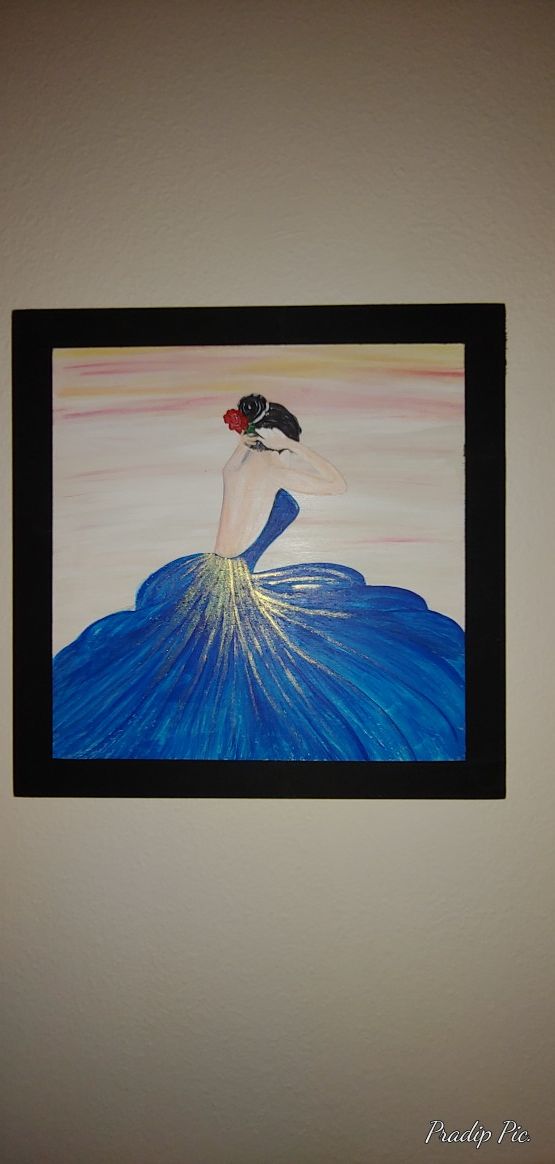 A beautiful painting on wood board. Lovely gift for daughter, girl friend and for home decore. Size 12"x12".