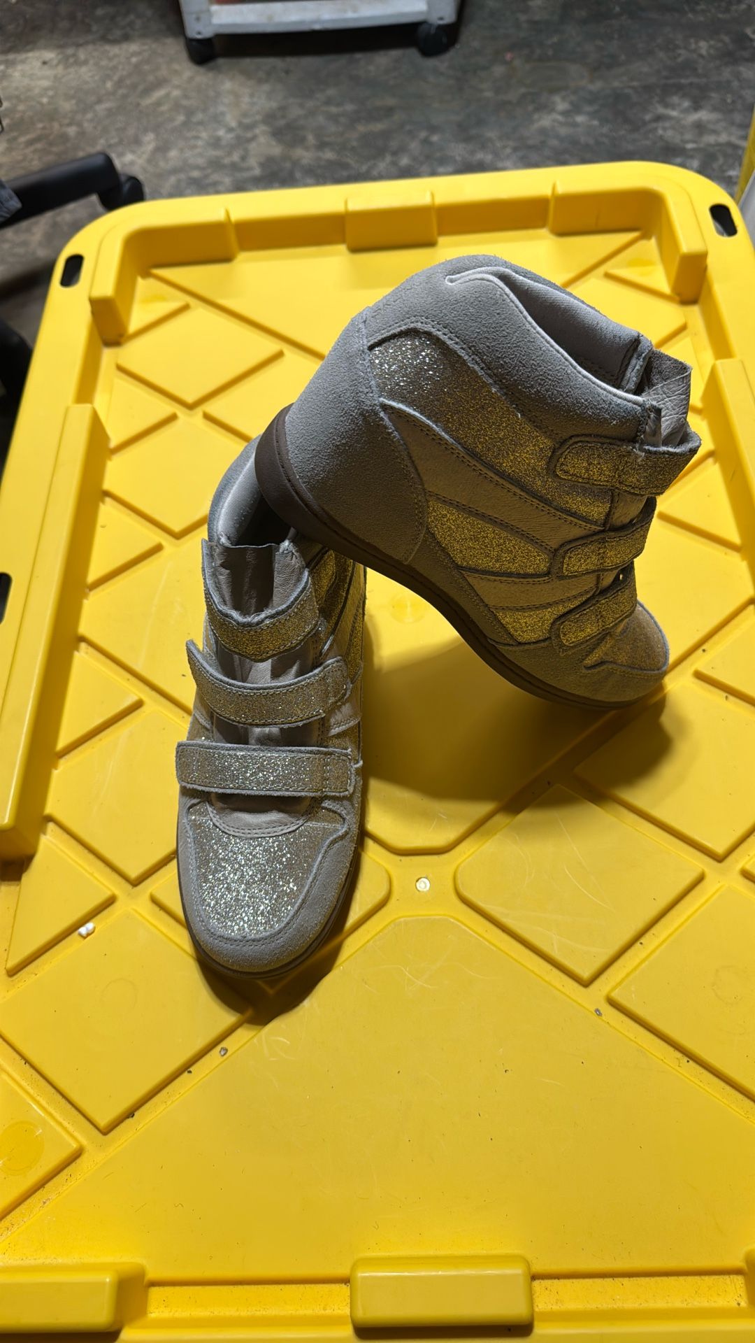 Women’s Taupe w/Gold Glitter Skechers SKCH3 Size 8 No Damage, Normal Wear for pickup only.
