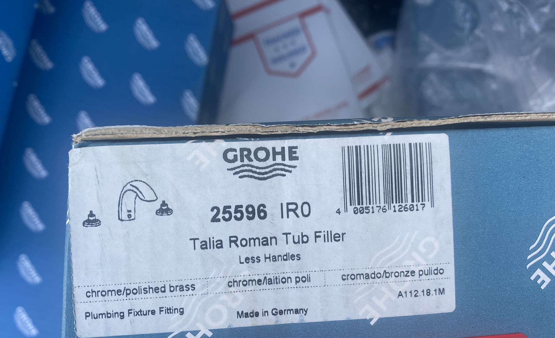 Selling this new in open retail box GROHE (contact info removed)0 TALIA Collection Roman Tub Filler (Less Handles),Chrome 25596 IRO. Item never used all parts And components included.