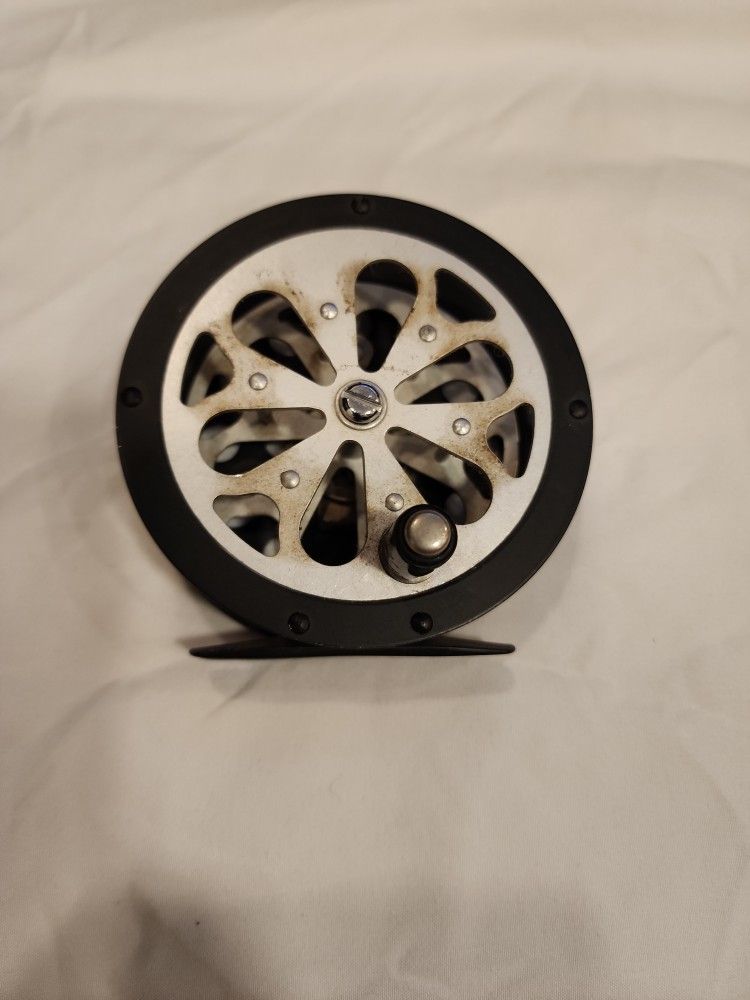 Pflueger Sal-Trout #1554 fly reel is new old stock. Never used. An excellent piece for collection or use on your next trip. No pitting or marks. Smooth winding reel.