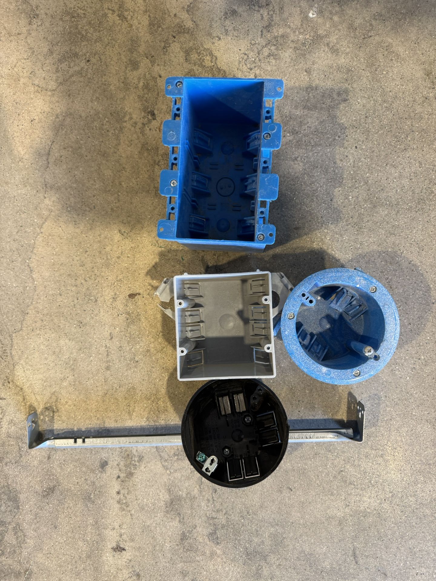 Bulk lot of assorted electrical boxes – approx. 80 pieces total. Includes: • Single gang old work boxes • New work boxes (with brackets) • Round ceiling/light fixture boxes • Mixed sizes and styles Great for contractors, electricians, or anyone doing remodels. All in good usable condition. Selling as one bundle only. ⸻ Pickup Located near 405 & IKEA in Carson ⸻ Keywords electrical box, junction box, pvc box, carlon, blue box, old work, new work, ceiling box, electrician, contractor, construction, bulk, wiring, remodel, outlet box