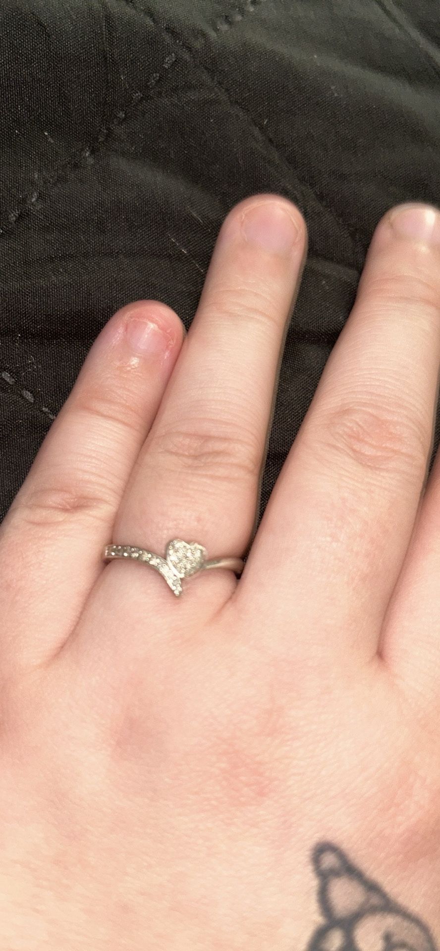 PICKUP ONLY CRAIG AND CAMINO AL NORTE AREA Someone bought this for me, and I no longer have use for it. Broke up with them, so no longer need it. It’s been hard to let go of it, but it hurts to keep it. It is a sterling silver promise ring , 1/6 carat total weight of genuine diamonds set in a heart design. Originally purchased for $525, and worn lightly for about a year. • Metal: Sterling Silver • Diamonds: 1/6 Carat Total Weight • Style: Heart Promise Ring • Size: 8 • Original Price: $525 • Pre-owned, good condition • Light normal wear, no missing stones • Shines beautifully (see photos) Price: Asking $200 OBO (originally $525). Open to reasonable offers.