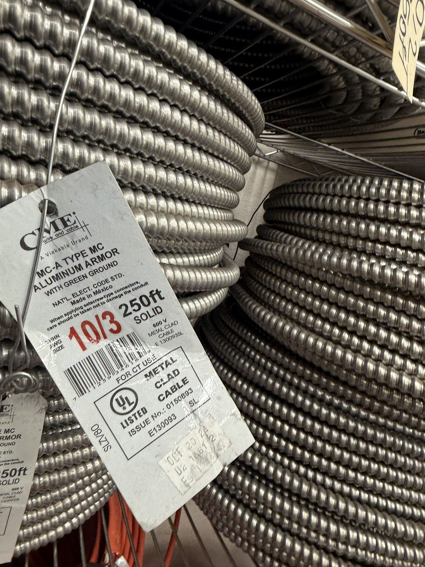 MC Wire 10/2 250ft $350 Metal Clad Solid Cable (10/3 MC Wire 250ft $480)