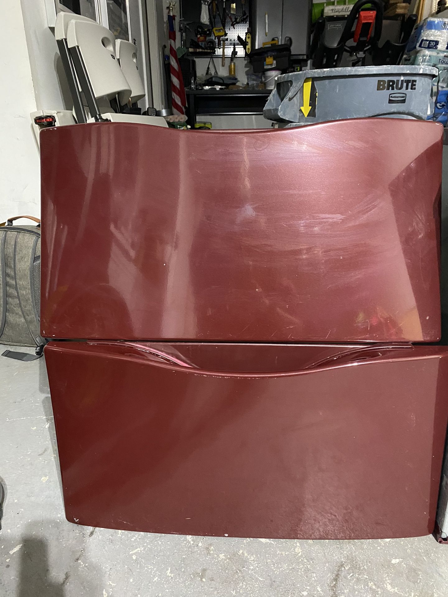Elevates washer and dryer and gives you built you extra storage space Fits 27in Kenmore Elite washer and dryer in burgundy Original parts and hardware