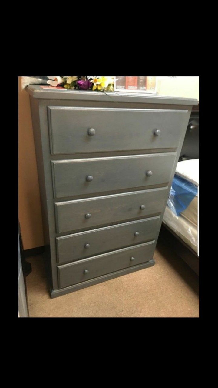 Grey Dresser 5 Drawers Pinewood Doble Knobs $299