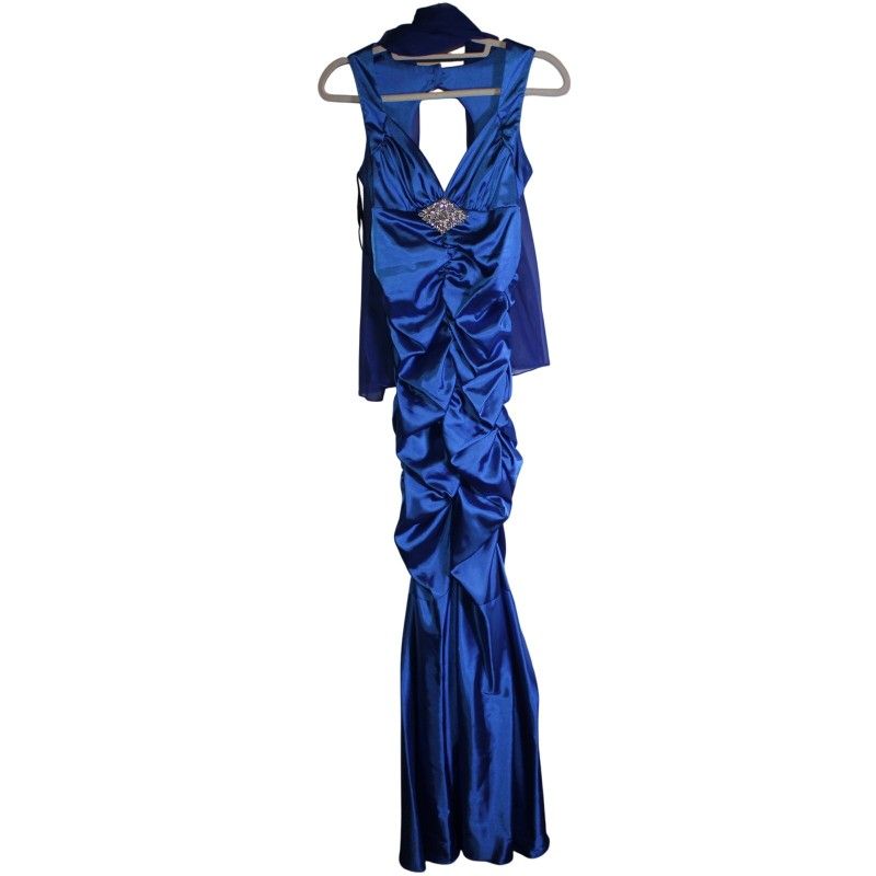 Royal Blue Satin Evening Gown — Size S Worn once, like new. Gorgeous ruched mermaid style with rhinestone detail. Shiny satin fabric, very flattering and elegant — perfect for prom or formal events.