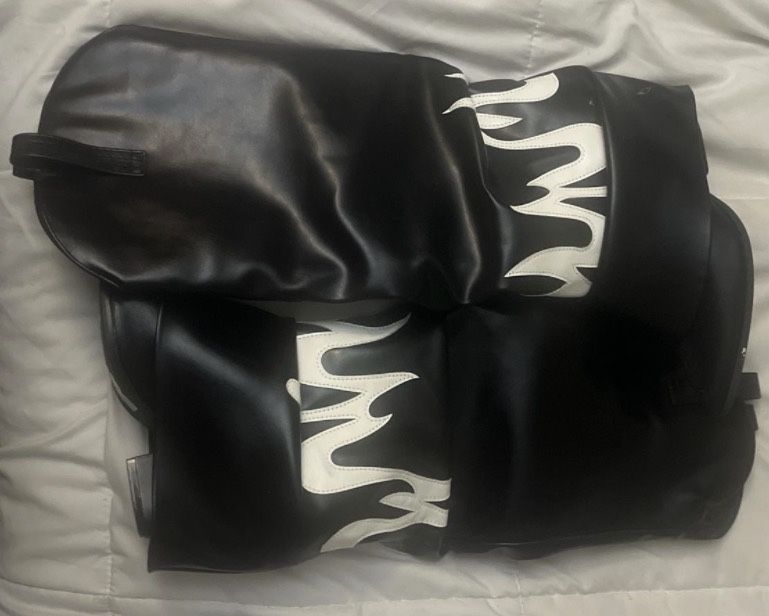 Fashion Nova Black and White Western Flame Print Heeled Knee High Boots