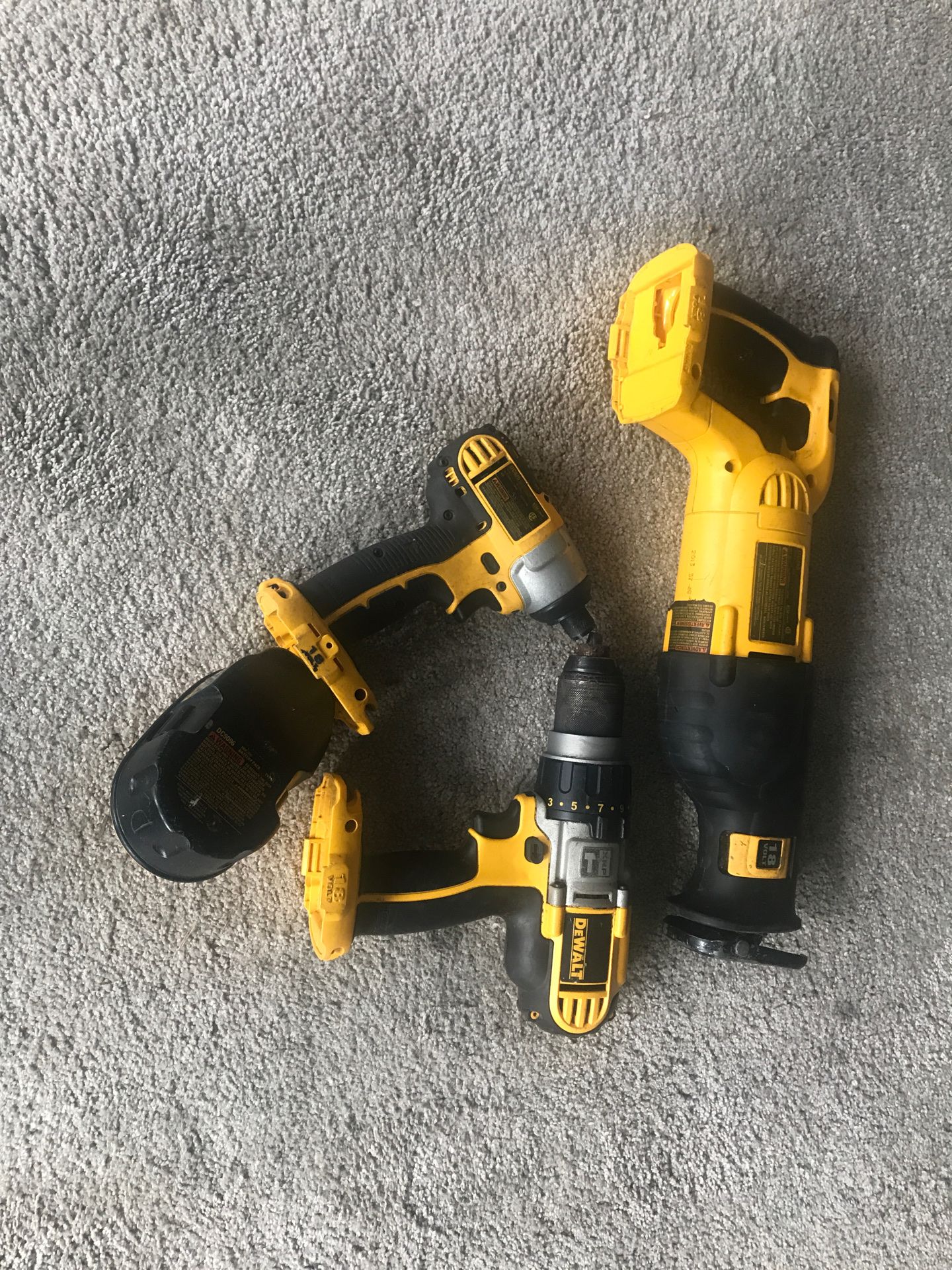 Dewalt 18 v Impact drill hammer drill recip/saw and battery great condition