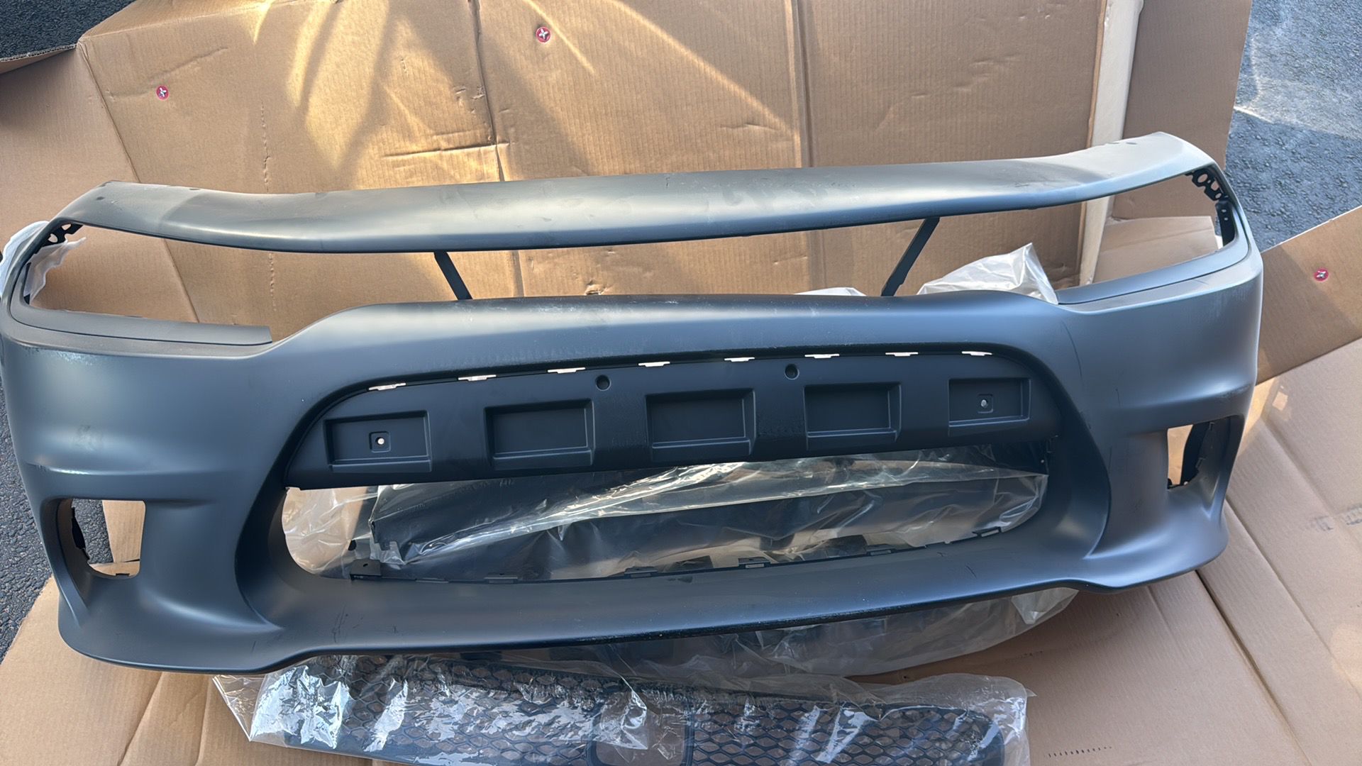 New still in the box 2016 Dodge charger Hellcat conversion front bumper with grills and fog light inserts